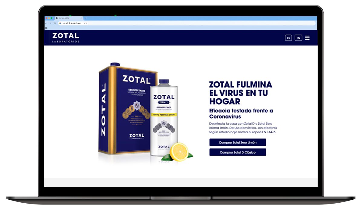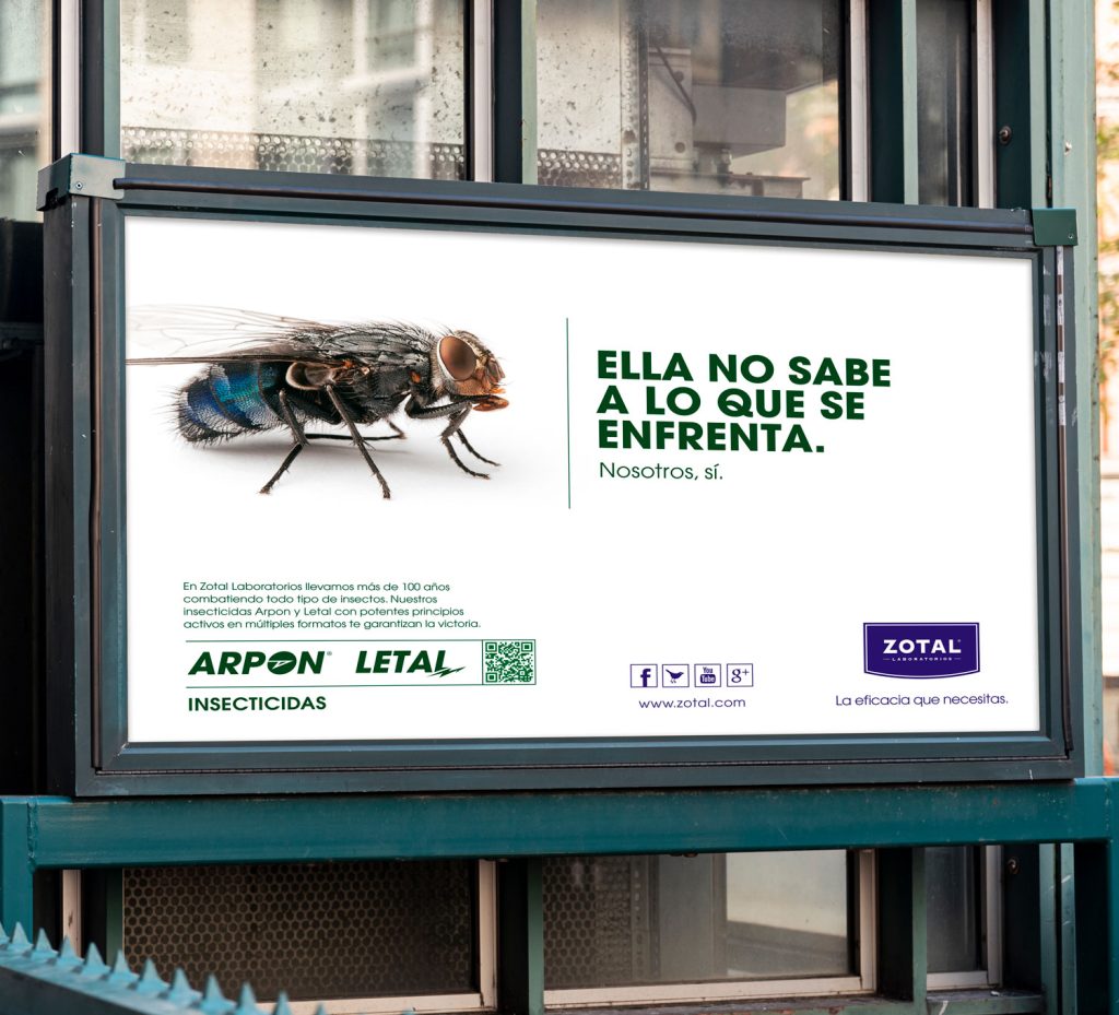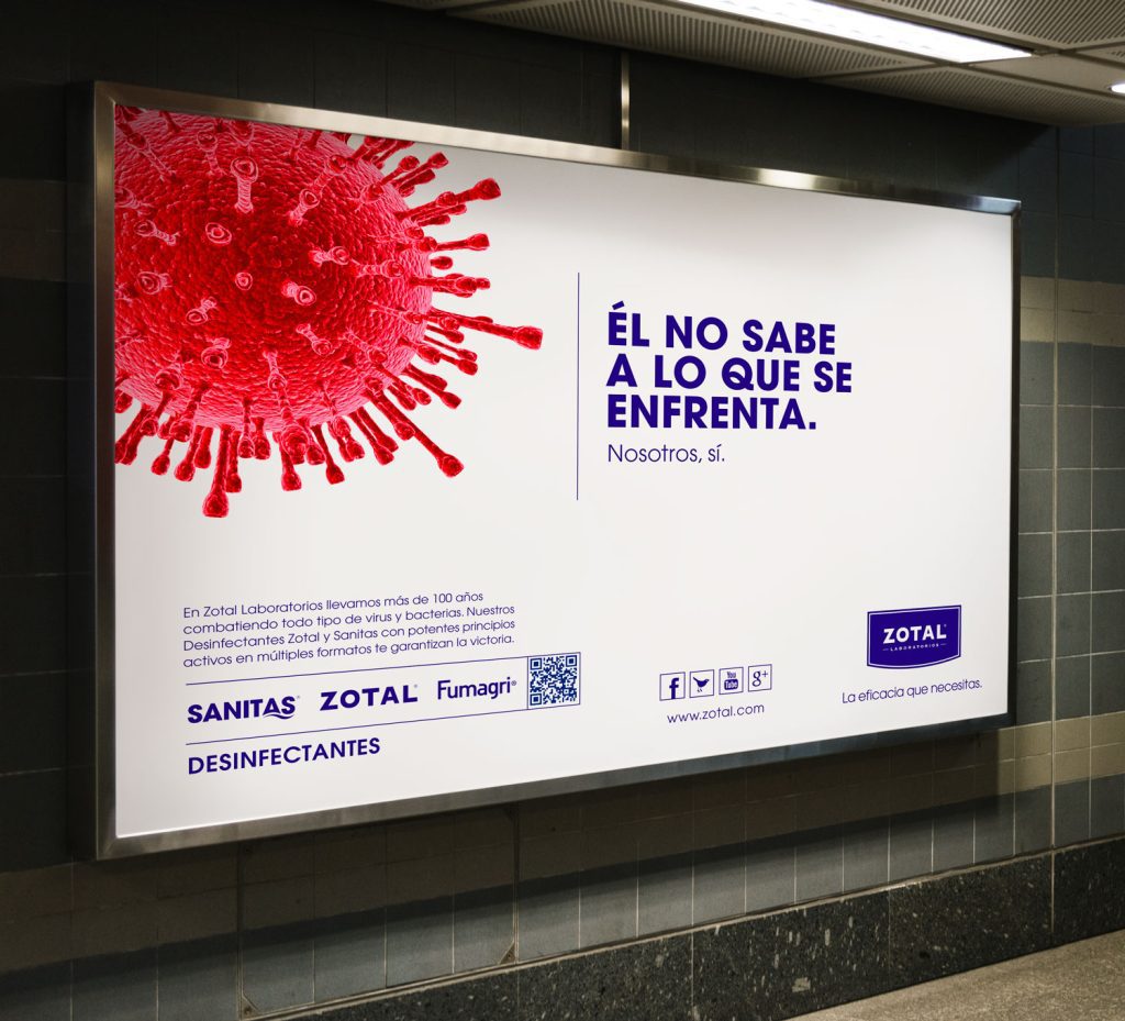 Rediseñamos la identidad corporativa de Zotal actualizándola, creamos un concepto de comunicación que posiciona la marca y pone en valor la eficacia de sus productos, diseñamos el packaging de todos sus productos, incluida la icónica lata de Zotal D y la nueva gama Zotal Hogar. Hemos llevado a cabo todas las acciones en puntos de venta, diseñado material comercial y páginas web, creado campañas de publicidad convencional, acciones especiales, producido el material audiovisual y fotográfico requerido, etc. Todo lo necesario para dar a conocer los productos y la empresa a nivel nacional e internacional.